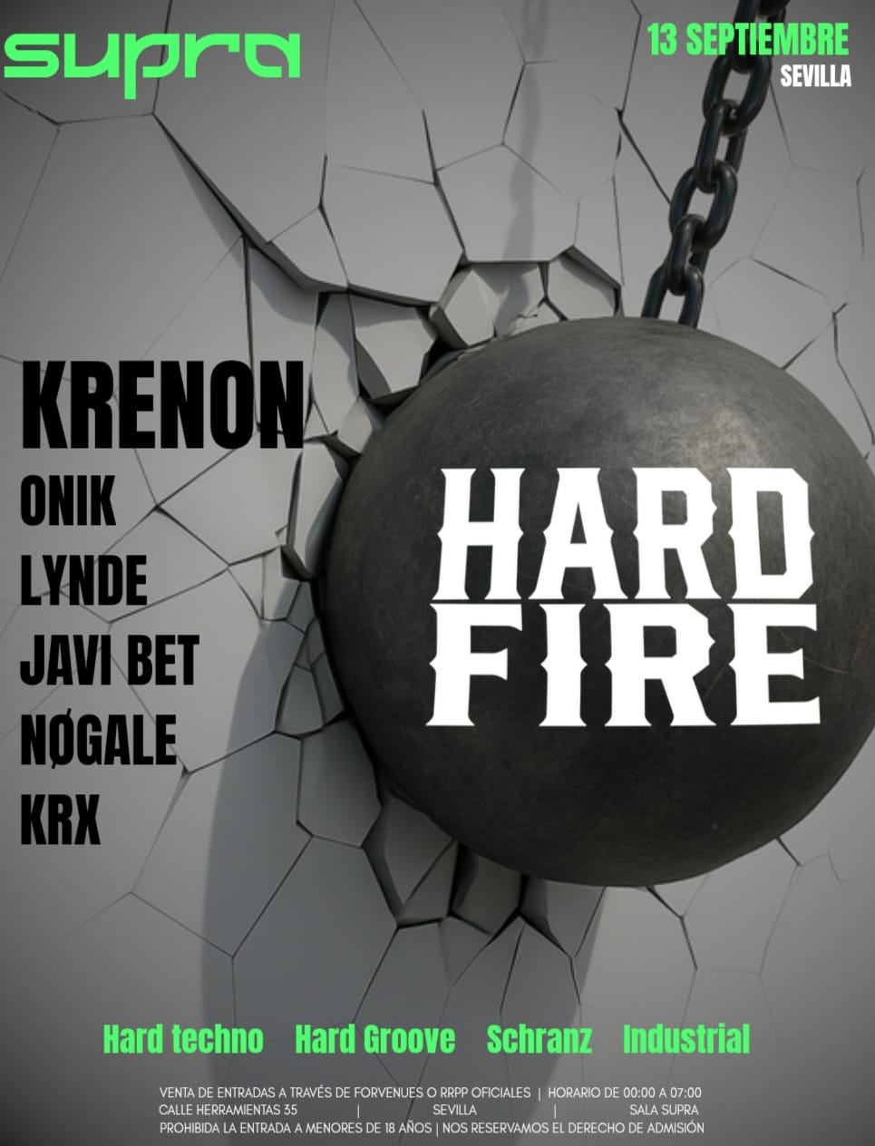 La nueva temporada de Hardfire arranca en Supra con un cartelazo protagonizado por sus cinco residentes: Krenon, Onik, Lynde, Javi Bet, Nøgale y KRX. Una noche dedicada al hard techno, el schranz, el raw y otros sonidos extremos, de la mano de cinco artistas emergentes de la escena underground.